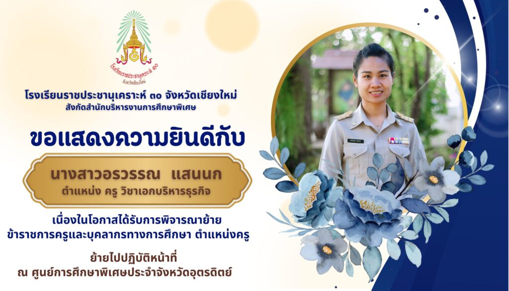 ย้ายไปปฏิบัติหน้าที่ ณ ศูนย์การศึกษาพิเศษประจำจังหวัดอุตรดิตย์