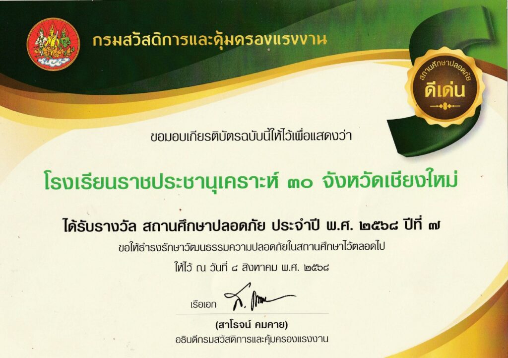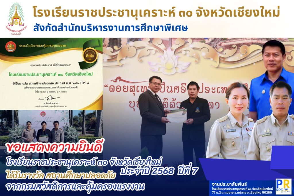 “ขอแสดงความยินดีกับ” 4 ธันวาคม 25684 ธันวาคม 2025 nakio.th1234@gmail.com ข่าวประชาสัมพันธ์, ผลงานนักเรียน/ครูโรงเรียนราชประชานุเคราะห์ ๓๐ จังหวัดเชียงใหม่ได้รับรางวัล สถานศึกษาปลอดภัย ประจำปี 2568 ปีที่ 7จากกรมสวัสดิการและคุ้มครองแรงงานFacebookFacebookXXLINELine