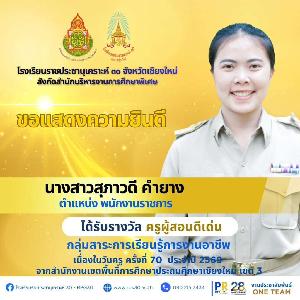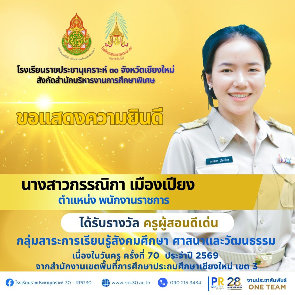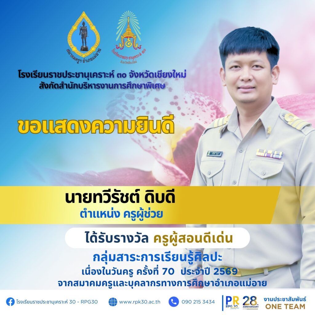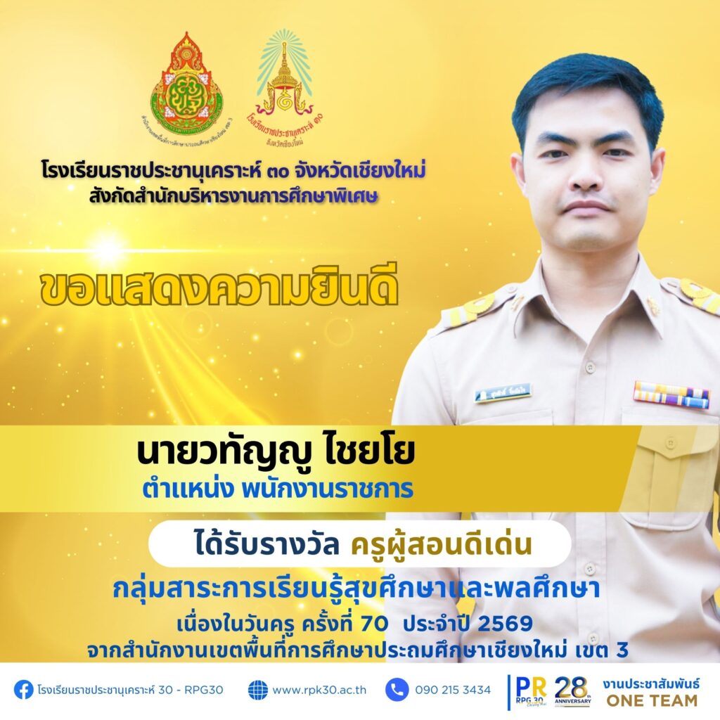 เนื่องในวันครู ครั้งที่ 70 ประจำปี 2569 จากสำนักงานเขตพื้นที่การศึกษาประถมศึกษาเชียงใหม่ เขต 3 จำนวน 7 ราย ดังนี้