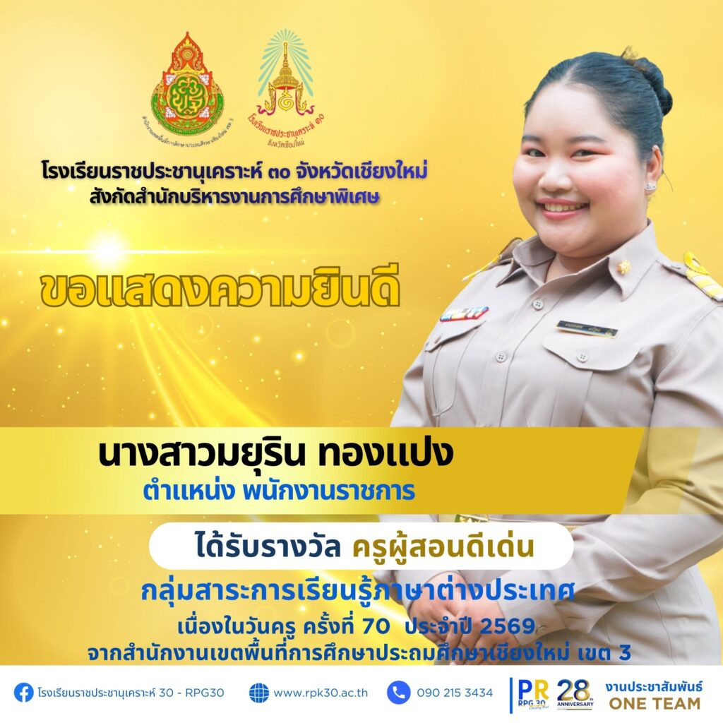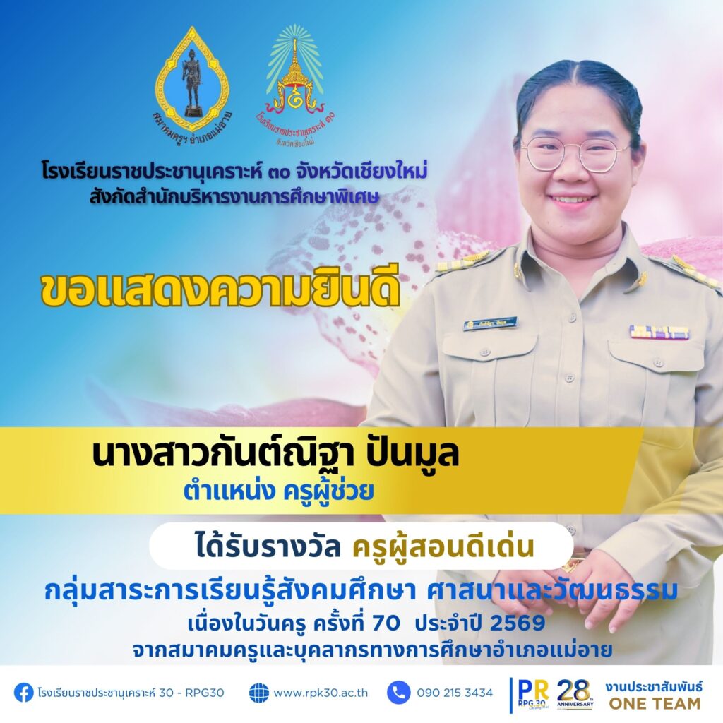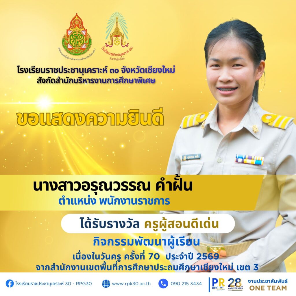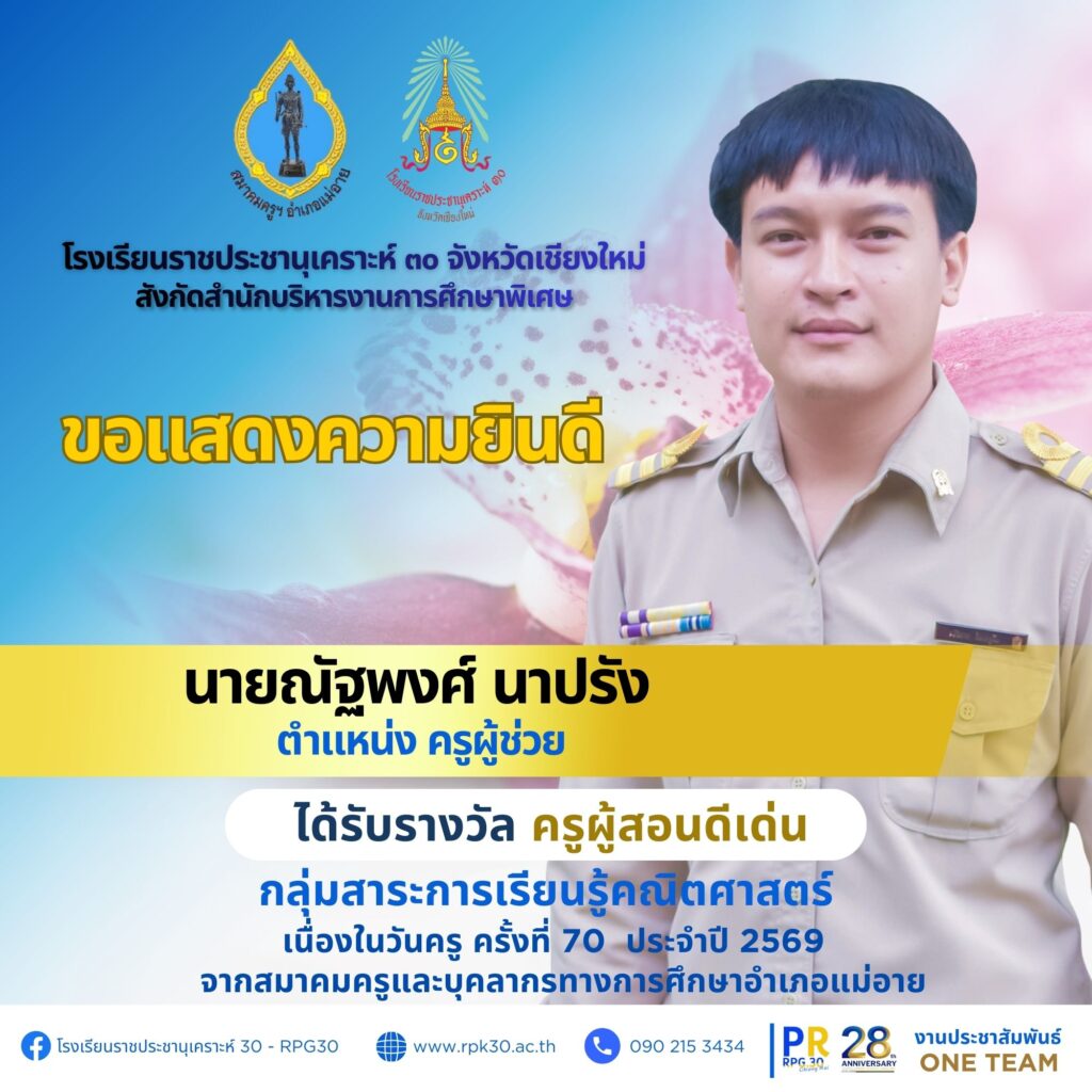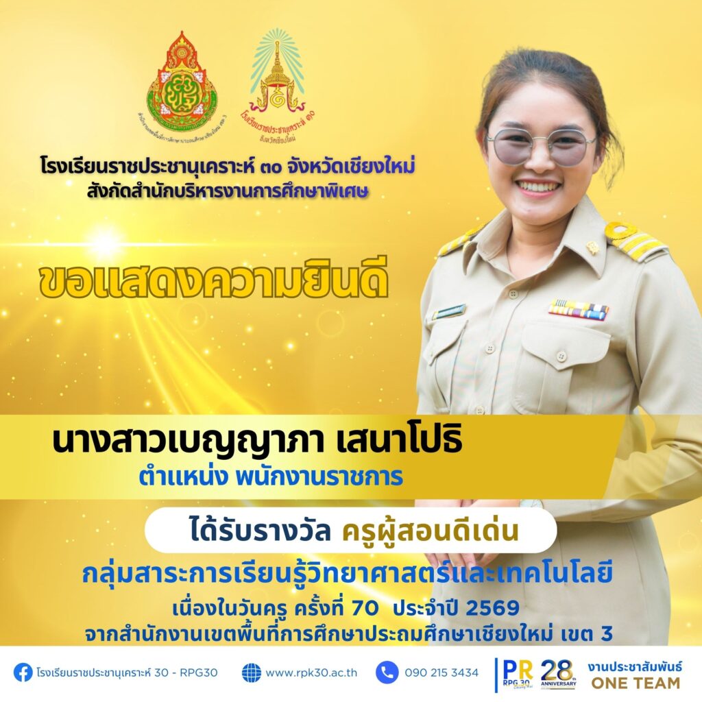 เนื่องในวันครู ครั้งที่ 70 ประจำปี 2569 จากสำนักงานเขตพื้นที่การศึกษาประถมศึกษาเชียงใหม่ เขต 3 จำนวน 7 ราย ดังนี้